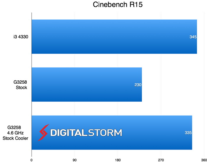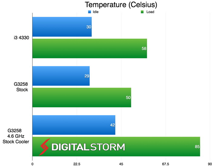 Su una piattaforma composta da una ASUS Z97 Deluxe e 16 GB di RAM Corsair Dominator Platinum DDR3-1877, il Pentium G3258 è stato spinto fino a 4,6 GHz con tensione di 1,28 V utilizzando il dissipatore stock. Con sistema di raffreddamento a liquido non sono riusciti a spingire di più il processore, trovando quindi già il limite dell'esemplare con il dissipatore ad aria reference. Di seguito tutti i risultati ottenuti.