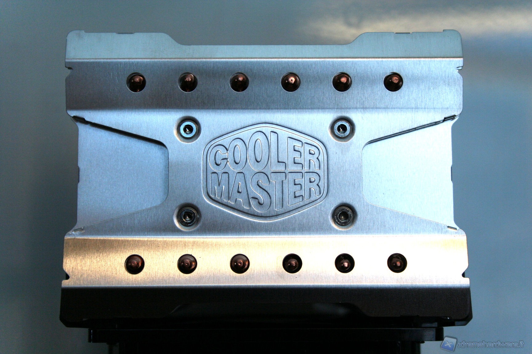 Cosa possiamo aspettarci da questo dissipatore? Indubbiamente, date le generose dimensioni non possiamo fare altro che pretendere un risultato complessivo di buon livello. Data anche la solidità strutturale, la conformazione classica rivisitata con nuovi accorgimenti, le finiture ed il buon assemblaggio, sicuramente sarà molto difficile non rimanere soddisfatti. Iniziando l’analisi dall’alto, Cooler Master ha installato una nuova placca superiore, che riporta il logo caratteristico dell’omonima casa costruttrice. La finitura è eccellente, come del resto la lavorazione finale delle heatpipe nella parte superiore. Heat-pipe e base sono in rame a vista, senza quindi trattamento di nickelatura, che solitamente protegge da ossidazioni e alterazioni del colore.