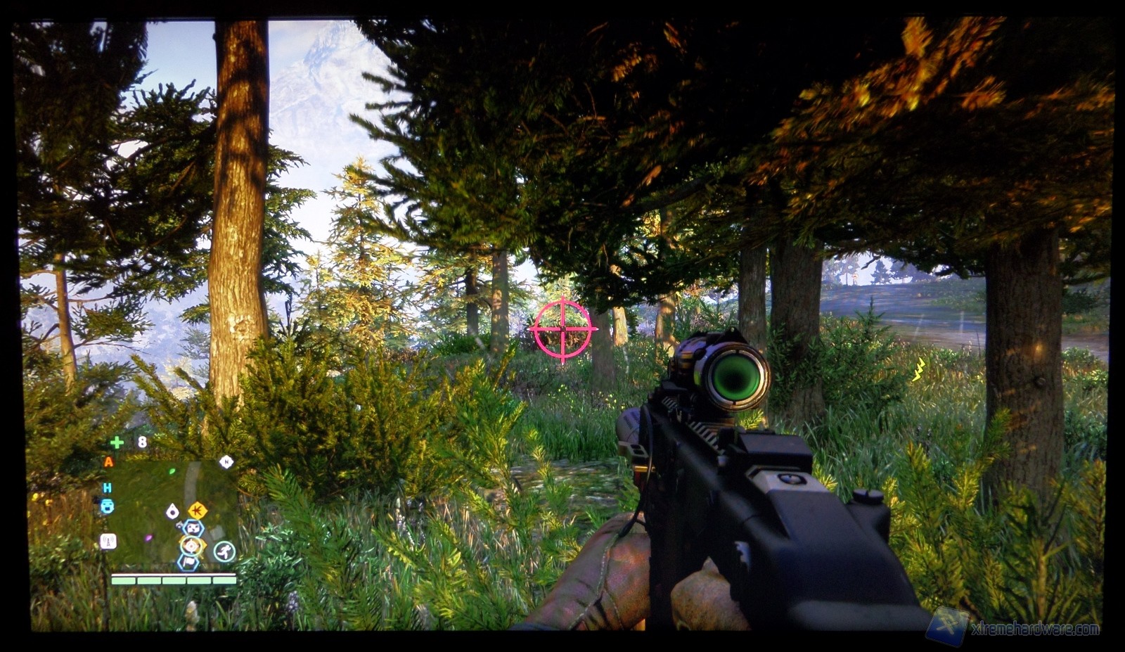 Durante l’utilizzo di videogames dà quindi più soddisfazioni il G-SYNC che l’ULMB, visto che il Philips è comunque un monitor piuttosto rapido. Il mirino che è possibile aggiungere durante il gameplay può essere d’aiuto, come evidenziato nelle immagini, ma non si potrà cambiare la posizione dello stesso, che sarà sempre e comunque centrale.