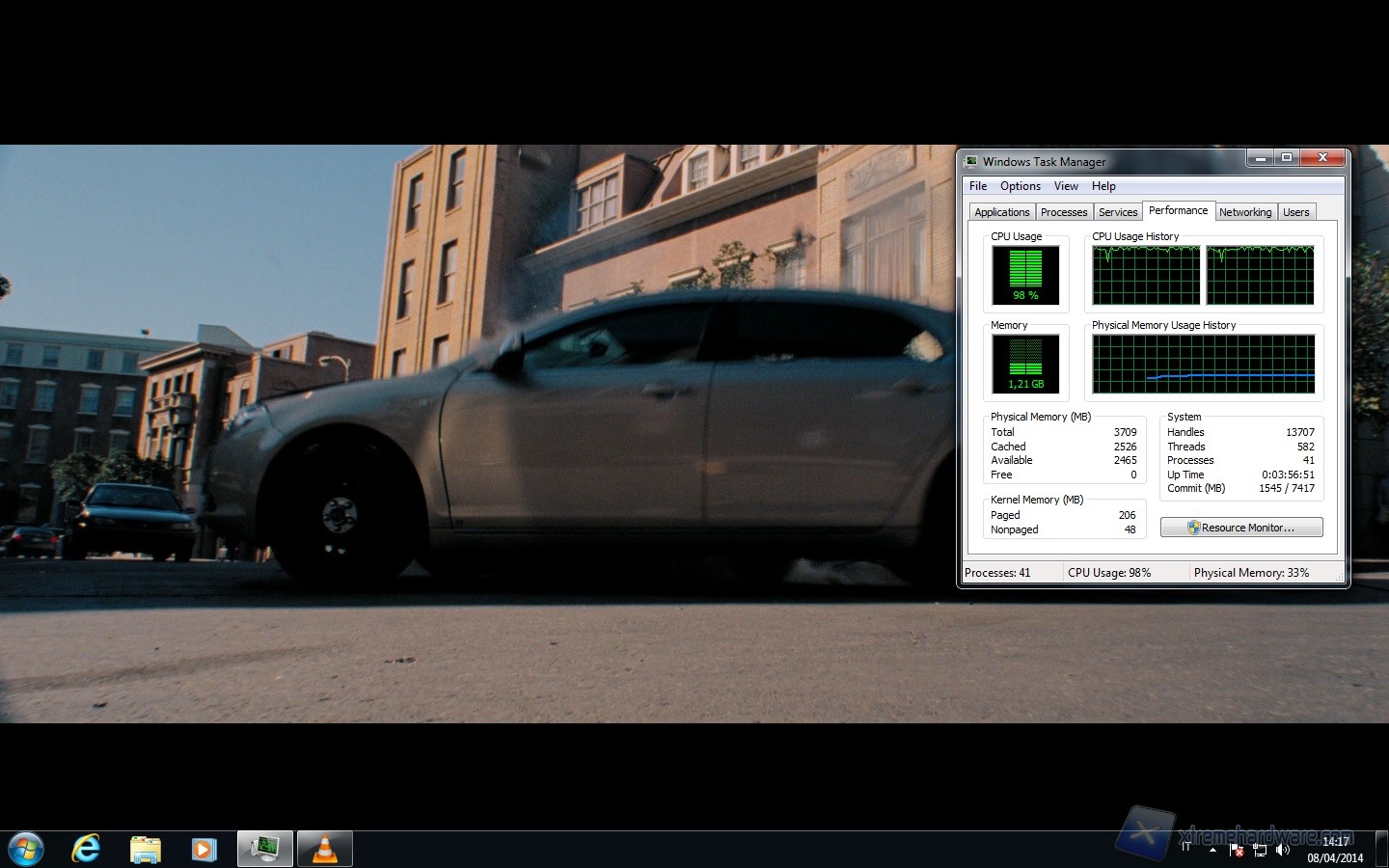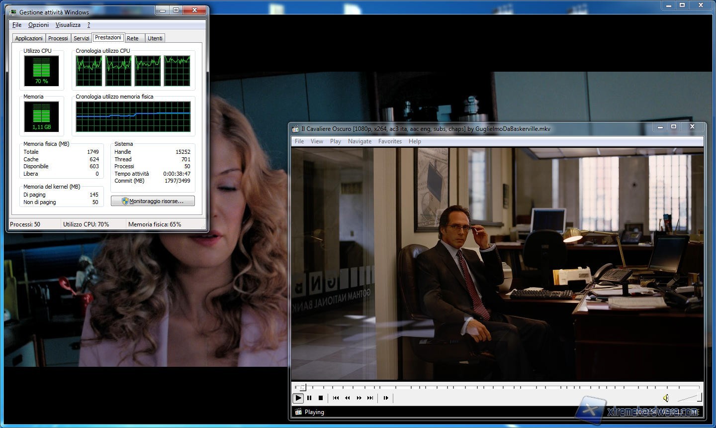 Come si nota dal grafico la CPU si assesta sul 70% di utilizzo rendendo la riproduzione di entrambi i film piuttosto fluida.